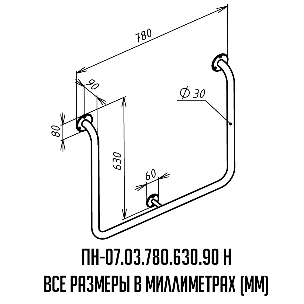 Поручень для инвалидов настенный П-образный ПН-07.03.780.630.90.Н