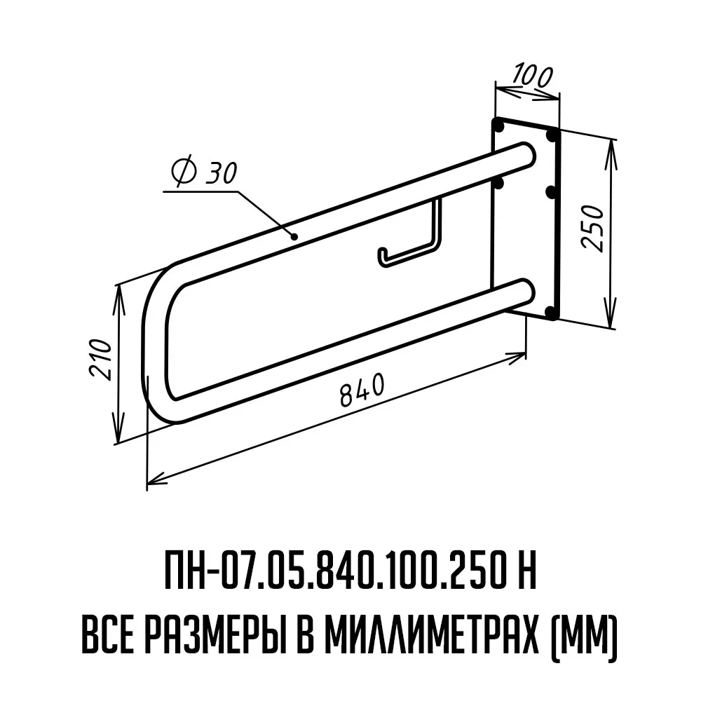 Поручень для инвалидов настенный с бумагодержателем ПН-07.05.840.100.250.Н