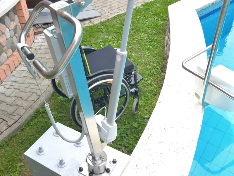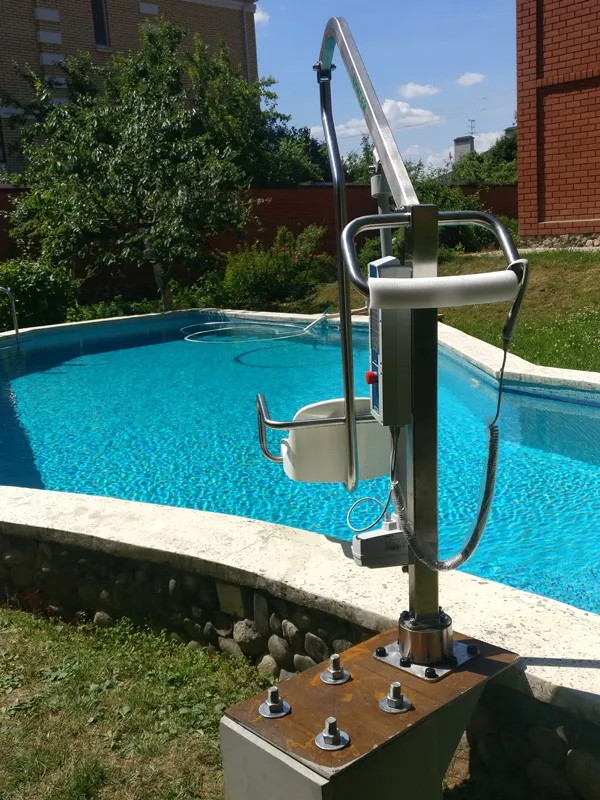 Конструкция подъемника для бассейна выполнена из шлифованной нержавеющей стали высокого качества. Подъемнику не страшны ни воздействие атмосферных осадков, ни химические чистящие средства, применяемые в бассейне.