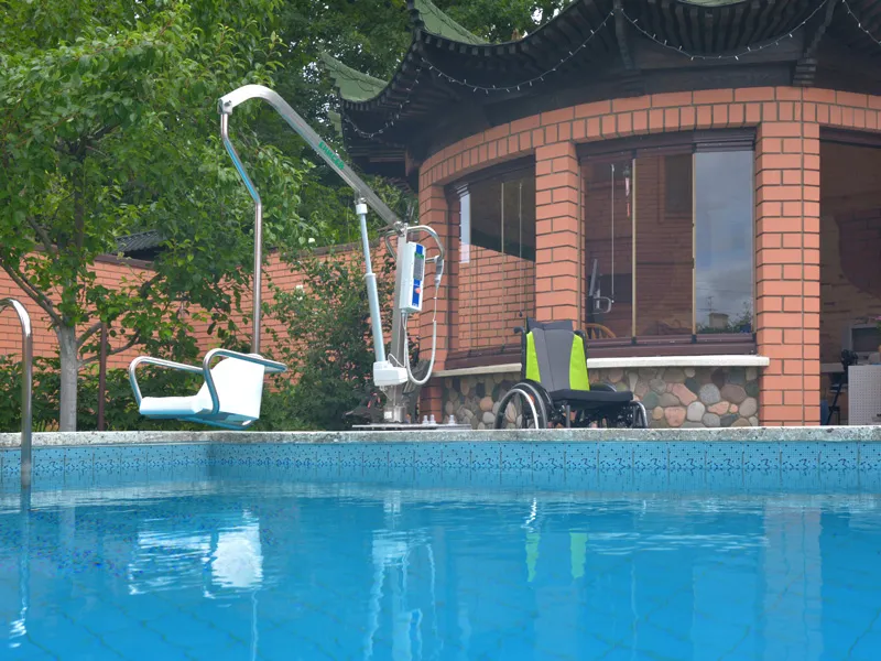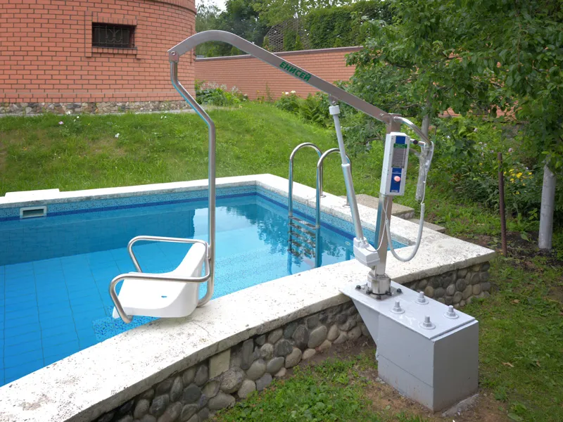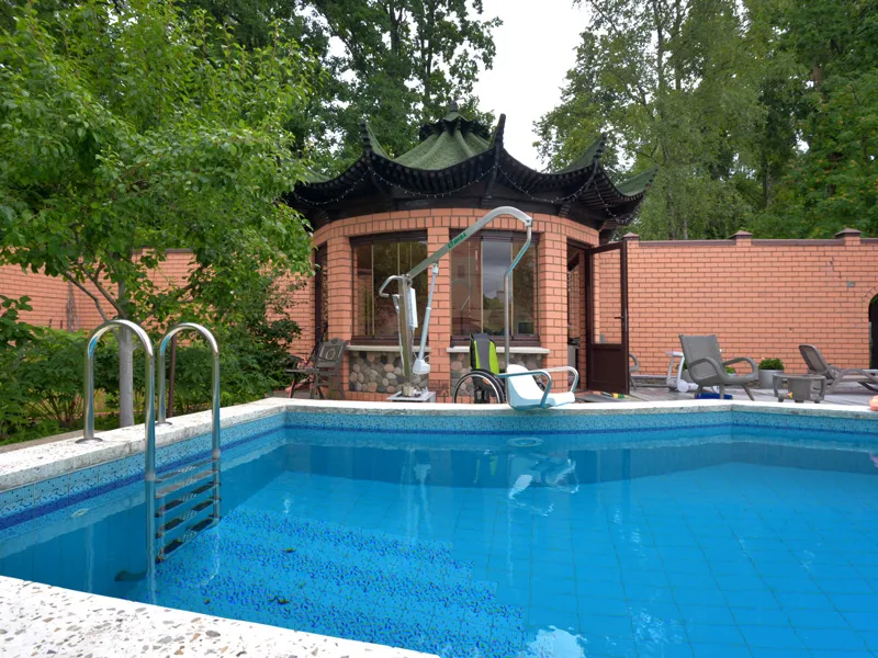 Для оснащения бассейна, расположенного во дворе частного дома в Московской области, был выбран подъемник ЕНИСИЕЙ ИПБ-170 ЭП.